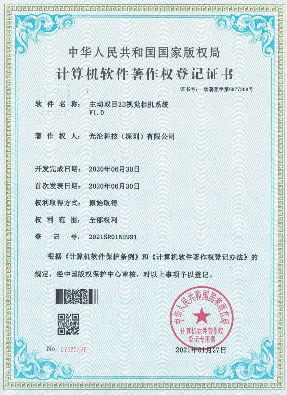 光淪科技工業(yè)機(jī)器人視覺(jué)相機(jī)獲得了多項(xiàng)國(guó)家專利及軟件著作權(quán),公司自成立以來(lái)一直堅(jiān)持自主知識(shí)產(chǎn)權(quán)研發(fā)工業(yè)3D相機(jī)!